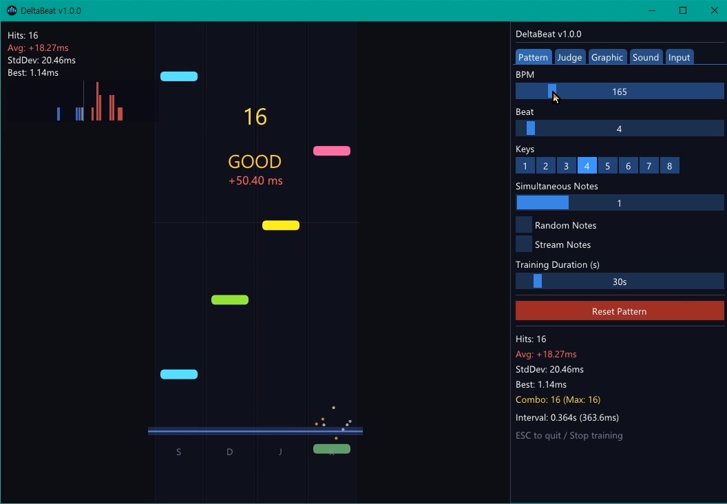 DeltaBeat is a precision rhythm training tool designed for rhythm game players who want to improve their timing accuracy.